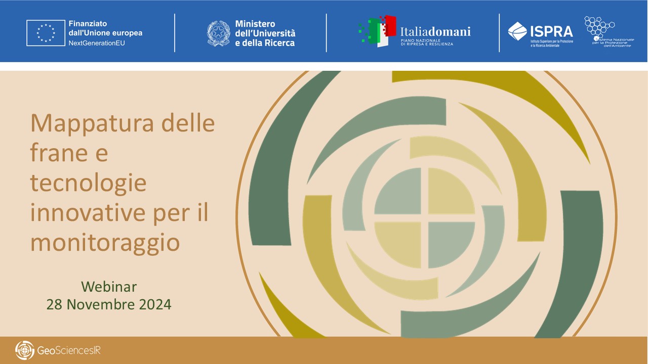 Durante il webinar sono stati presentati i principali sviluppi e le attività del WP3.1 focalizzato sul potenziamento della piattaforma nazionale IdroGEO, sull'aggiornamento dell'Inventario dei Fenomeni Franosi in Italia e sul il monitoraggio delle frane , con nuove strumentazioni e tecnologie innovative. A partire dal lancio della nuova versione 2.0 dell'interfaccia di IdroGEO a maggio 2024, sono stati illustrati i progressi nel potenziamento della piattaforma, che ora include un visualizzatore 3D e un tool avanzato per l’analisi dei parametri locali legati alle frane. Inoltre, sono stati presentati i sistemi di monitoraggio censiti nell’Anagrafe nazionale, e quelli finanziati da GeoSciences IR tra cui stazioni in alta quota, radar doppler, monitoraggio dei suoli piroclastici e fotomonitoraggio. È stata evidenziata l’importanza della revisione degli Inventari regionali dei Fenomeni Franosi nelle regioni di Campania, Sicilia e Sardegna. Il webinar ha anche approfondito le analisi in corso sulle frane sismoindotte e sulle metodologie per stimare il rischio da frana, inclusa la definizione di un protocollo a scala locale basato su dati geologici, geomorfologici, geotecnici, modellazione 3D e telerilevamento.