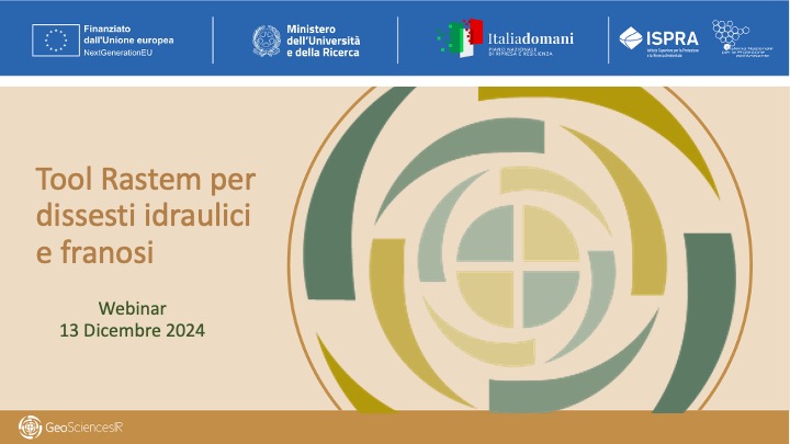 Durante il webinar sono state illustrate le attività e i prodotti principali i principali dell’Action 4.1 del WP4 denominata “Hydrogeological Risk Mitigation” i cui obiettivi sono stati fortemente connessi all’attività del Tavolo Tematico E “Difesa del Suolo” in capo alla Rete Italiana dei Servizi Geologici (RISG). In particolare, obiettivo del Tavolo è quello di affrontare le tematiche attinenti alla difesa del suolo in senso esteso, con particolare attenzione alla programmazione, attuazione e monitoraggio degli interventi per la mitigazione del rischio idrogeologico.Conseguentemente all'attività del Tavolo, l’Action 4.1 é stata mirata all'implementazione dell’applicativo RaStEM, strumento predisposto da ISPRA per il supporto alla valutazione dei dati informativi associati ai progetti di mitigazione del rischio idrogeologico, anche ai fini del loro finanziamento pubblico (es. MASE). Sono state quindi presentate le implementazioni tecnologiche e informatiche dell’applicativo realizzate con GeoSciences IR, alcune delle nuove funzioni implementate con particolare attenzione a quelle per l’importazione e la gestione dei poligoni di RaStEM anche da tool, DB o strumenti GIS esterni. Sono stati presentati i tool messi a punto dall’Università di Cagliari e dall’Università di Salerno, tool che saranno disponibili sulla piattaforma GeoSciences IR, per il supporto alla creazione di un progetto RaStEM attraverso la definizione dei poligoni delle aree di dissesto e degli elementi esposti in condizioni ante e post operam.
